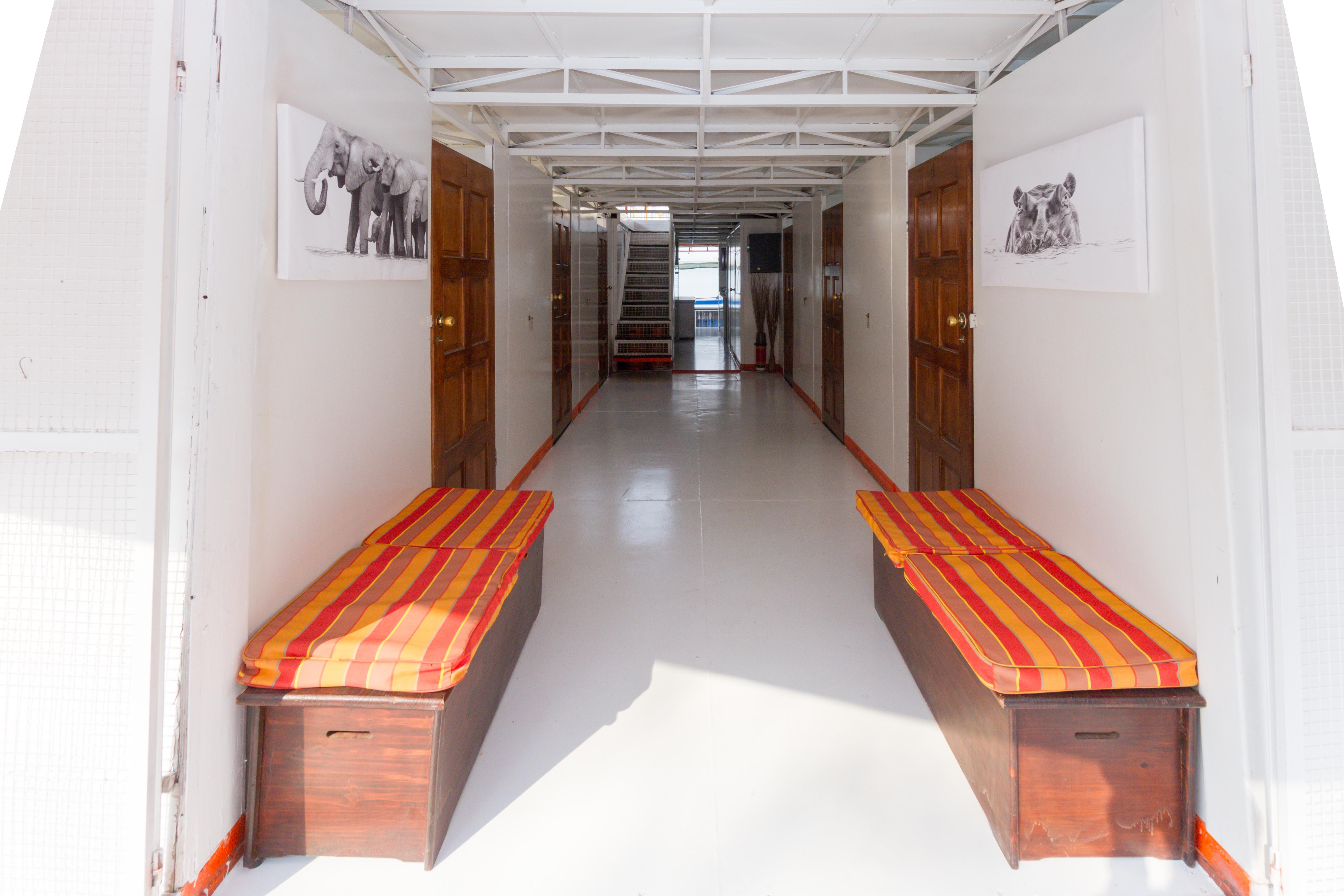 She is open plan which allows the Kariba Breeze to blow through he boat at all times, making for a cooling effect.