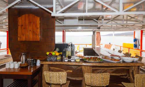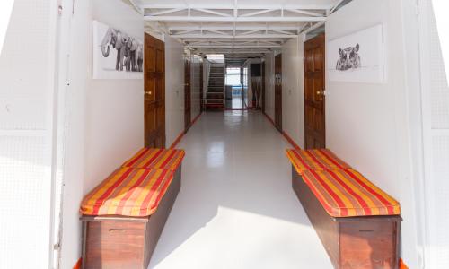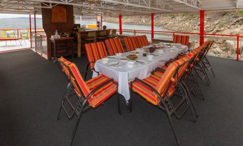 She is open plan which allows the Kariba Breeze to blow through he boat at all times, making for a cooling effect.